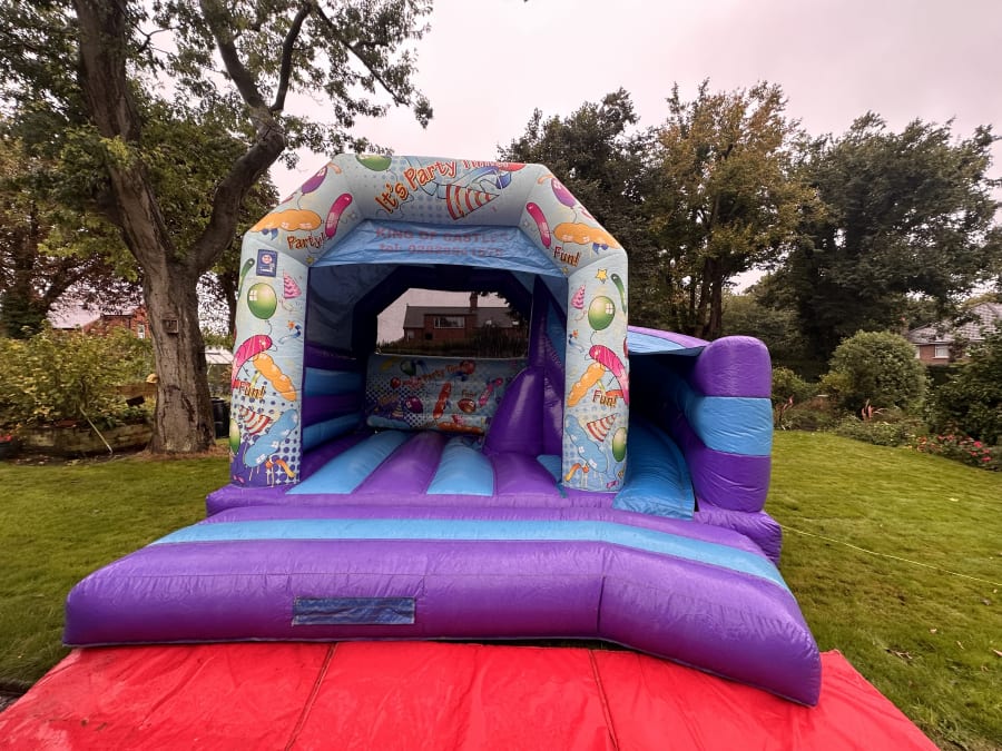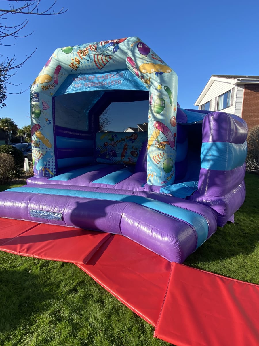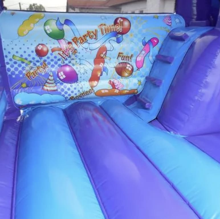 The Let's Party Bounce & 180° slide is taking combi castles to a new level. Featuring the 180° 6ft high slide integrated into a magnificent bouncy castle.